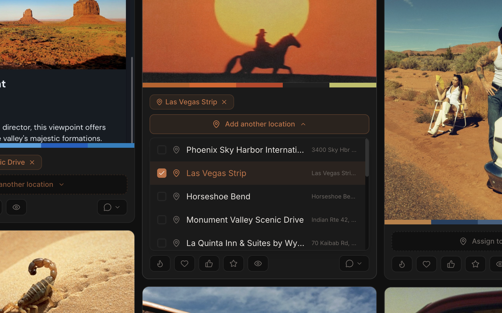 Your moodboard isn't just a pile of images — every reference can be assigned to a specific location, so your crew knows exactly which shot or place each image belongs to.